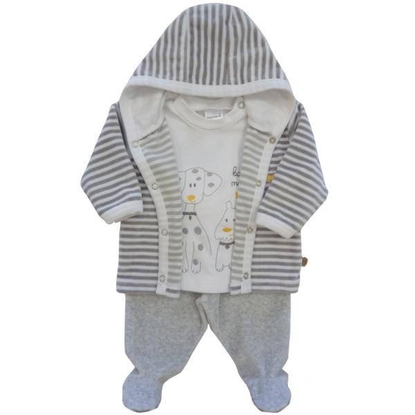 Conjunto de 3 Peças - Casaco com Capuz, Calça com Pé e Camisola Bordada para Bebé - VELUDO/CARDA