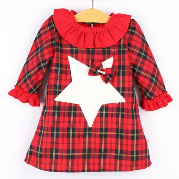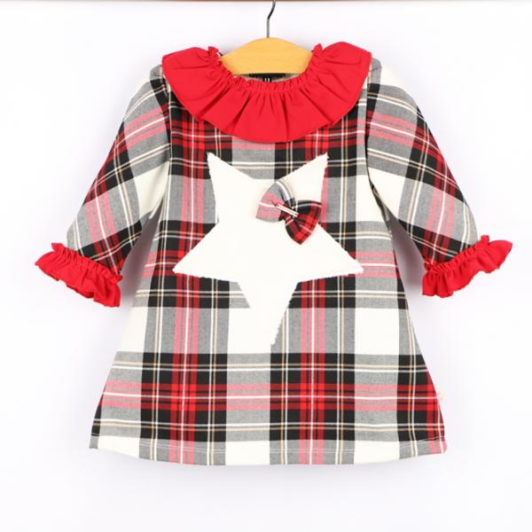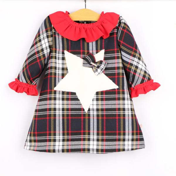 Vestido de bebe com Tecido Xadrez Aplicado pormenor Estrela